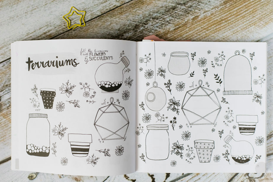 Jeśli chodzi o tę pozycję to nie było to rozczarowanie. Może tylko format „książki” mnie zaskoczył, bo jest niewielki. Jest to zarówno plus tej pozycji, bo jako iż jest to workbook przy tej wielkości bez problemu zmieści się w prawie każdej damskiej torebce (no może poza kopertówką 😉 ). Format trochę większy niż a5, prawie 200 stron inspiracji i stron do ćwiczeń.